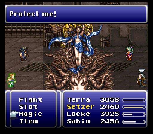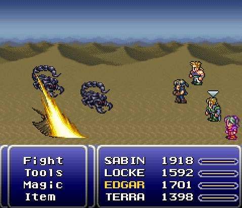 Final Fantasy III is laden with options. Unlike most JRPGs to this day, you're rarely bound to a single main character. There's no job system; each character is already gainfully employed in a traditional Final Fantasy vocation, or a combination of jobs. Edgar is a Machinist, Sabin is a Monk, Locke is a Thief (ahem, "treasure hunter"), Strago is a Blue Mage, Relm is a Pictomancer/Beast Master, Celes is a Rune Knight, and so on.