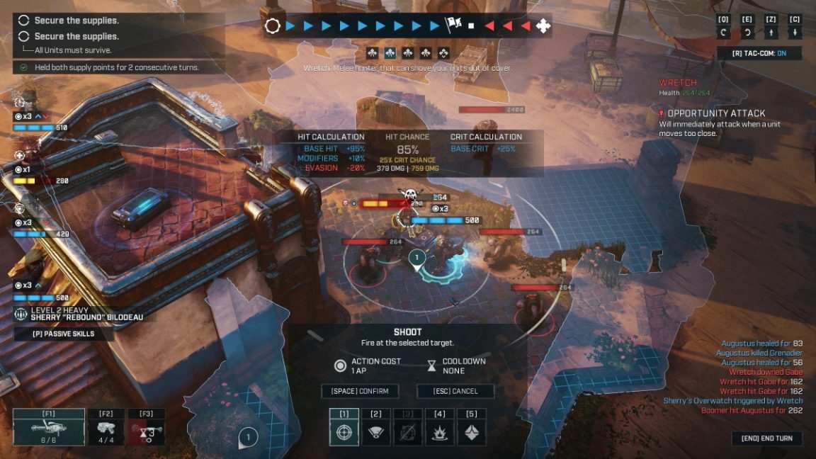 Just today, I witnessed my Heavy accidentally blast apart her own cover with a stray shell from her gatling gun. The pile of palettes exploded, sending her rolling backwards, and me scrambling to come up with a new plan to see off the Locust. Any turn-based strategy game that can successfully mimic the changability of third-person shooters deserves to be celebrated for it, and in its finest moments, Gears Tactics does just that.