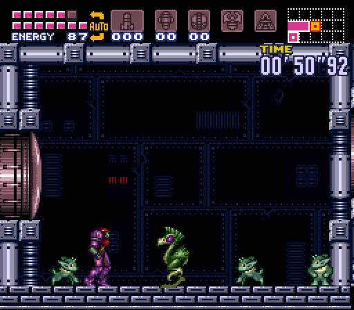 Much of what Super Metroid introduced to the medium seems to have been accidental genius. By that I don't mean Sakamoto and his team stumbled onto good ideas through dumb luck; a game as drenched in tiny details as Super Metroid clearly didn't happen by mistake. Rather, I simply mean that the devs invented elements for the sake of making Super Metroid better and, in the process, came up with game design concepts that worked just as brilliantly in (and soon trickled over to) other games. The auto-map improved greatly on the one seen in A Link to the Past, and its format became a universal standard once Castlevania: Symphony of the Night canonized it. Meanwhile, Super Metroid's ending screen expanded the original Metroid's concept of giving players different images of Samus based on performance to include a numeric breakdown of their speed and thoroughness. In the process, Super Metroid essentially created speedrunning.