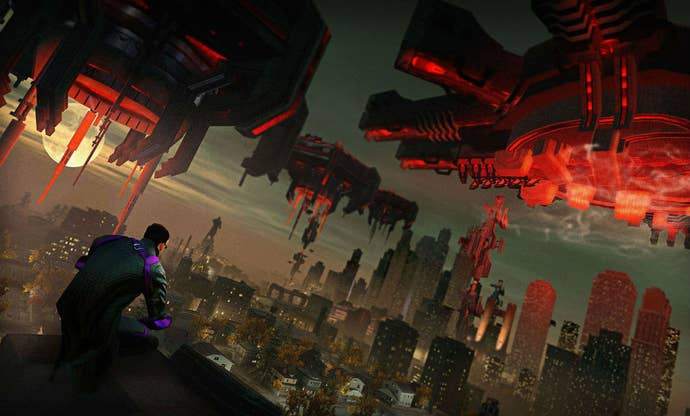 While Volition is finishing up its own tale, it's also using the latest Saints Row to poke fun at other games, movies, and television shows. Within the game's first two hours, you can expect to see a flight sequence asking you to "do a barrel roll," a 3D-riff on Space Invaders, shipboard romance options like Mass Effect, and a Ghost Recon-style opening with slow-motion door breaching and tasks like "kill terrorists." The gameplay steals shamelessly and perfectly from Crackdown and inFamous, giving a city to explore and collectible, building-borne widgets to boost your considerable superpowers.