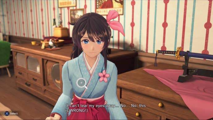 Their dedicated chapters should be a great opportunity for character growth, but it all feels a little too brief: you'll spend a few hours in a chapter adventuring around steampunk Tokyo with one of the girls, uncovering their past, motivations, and any insecurities. After that, you're whisked away to battle demonic forces encroaching on the city, rounding out the chapter. Through this, you'll grow closer and closer to them, culminating in a special 'Trust' event. The camera switches to first-person, and you'll shower them with compliments and cheesy romantic lines.